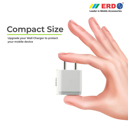 ERD Mobile Phone Charger TC-11 | Fast Charging Adapter with 1 Metre Micro USB Cable (White)