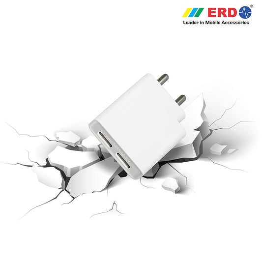 ERD TC-22 Twin Port Mobile Phone Charger | Fast Charging Adapter with 1 Metre Micro USB Cable (White)