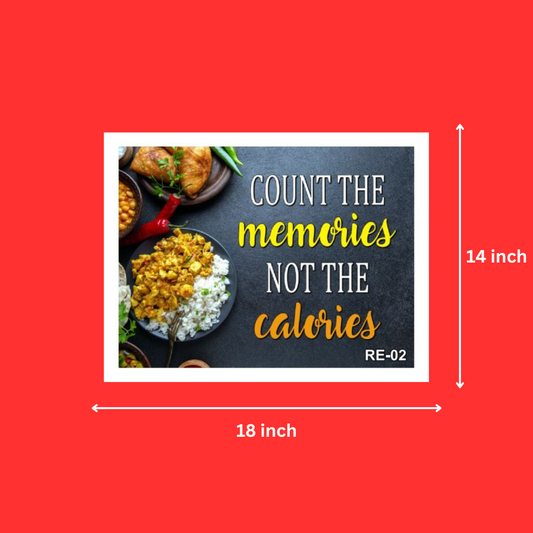 kitchen Wall Posters with White Frame for Food Lover | Quote on Food Count The Memories Not Calories (14X18 Inch)