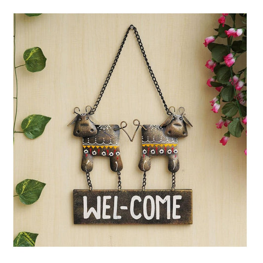 Metal Wall Art Wel-Come Cow Key Holder | Cow Hanging Wall Decor | Anti Rust Powder Coated | Premiun Wall Hanging For Living Room And Bedroom | (10 X 1 X 12 Inch)