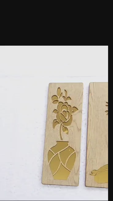 Wooden Wall Decor Laser Cut with Golden Effect for Home, Office And Gifting (12X15 Inch, 3pcs Set)