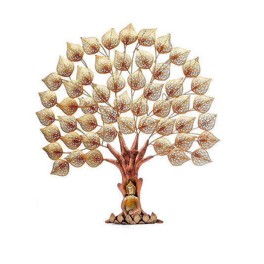 Metal Wall Art LED Golden Budha Tree | Golden Budha Tree Wall Decor | Led Wall Decor | Best For Living Room And Bedroom | (40 X 2 X 48 Inch)