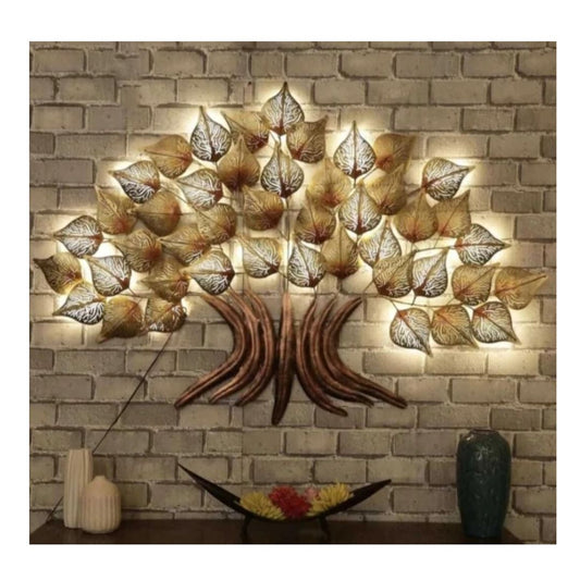 Metal Wall Art Led Tree | Golden Led Tree Wall Decor | Led Wall Decor Hanging For Living Room And Bedroom (60 X 2 X 36 Inch)