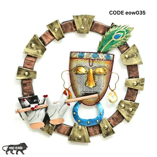 Metal Wall Art Krishna Frame | Krishna With Flute Wall Decor | Best For Living Room And Bedroom (20 X 2 X 20 Inch)
