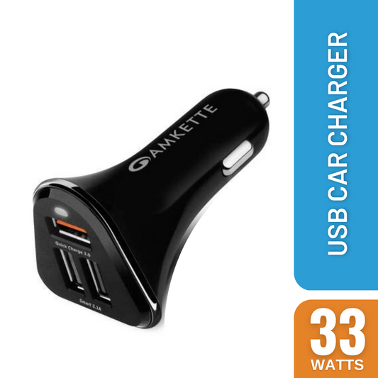 Amkette Power Pro 3 Port 33 Watts USB Car Charger with Braided Type C Cable (Black)