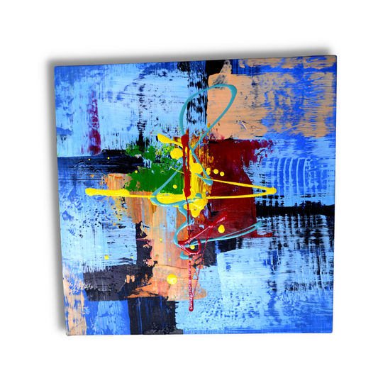 Wall Art Painting, Abstract Canvas Hand Painted Artwork, Square (11x11 Inches), Multicolor