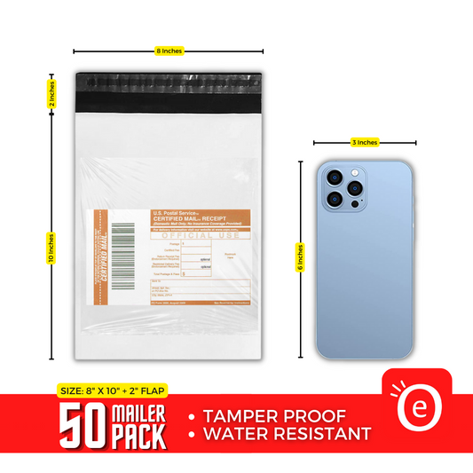 Courier Bags/Envelopes/Pouches/Cover 8X10 inches+ 2inch Flap Pack of 50 Tamper Proof Plastic Polybags for Shipping/Packing (With POD)