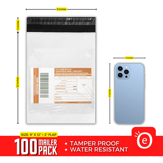 Courier Bags/Envelopes/Pouches/Cover 9X12 inches+ 2inch Flap Pack of 100 Tamper Proof Plastic Polybags for Shipping/Packing (With POD)