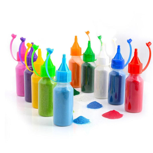 Rangoli Colour Powder Bottles 10 Colours moq 15 Set (@124.90 Per Set, Rs 1874/-) Plastic Squeeze Bottles (10pcs in 1 Set, 80g Each)