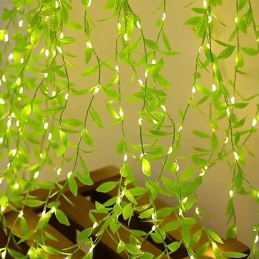 Diwali Artificial Leaf Curtain LED String Light, 200 LEDs, Perfect for Bedroom, Garden, Birthday & Festive Decor (10x3Feet, Green Color) Corded Electric
