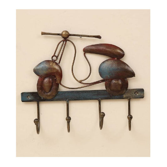Metal Wall Art Brown Scooter 4 Hooks | Metal Scooter Wall Decor | Best For Living Room And Bedroom (12 X 3 X 10 Inch)