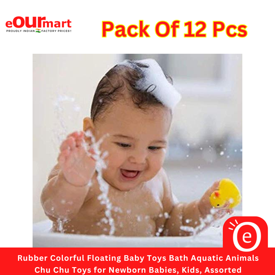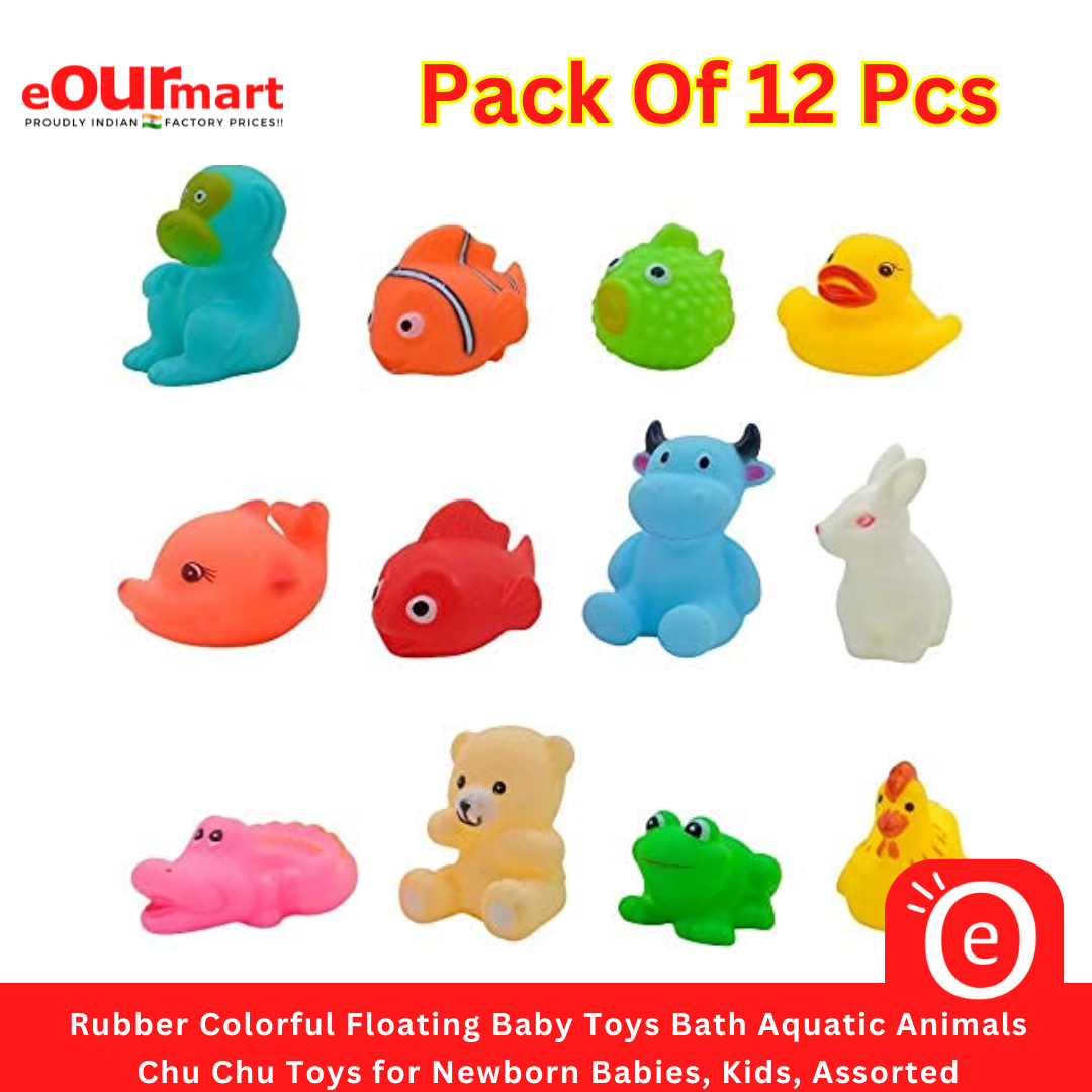 Rubber Colorful Floating Baby Toys Bath Aquatic Animals Chu Chu Toys for Newborn Babies, Kids, Assorted